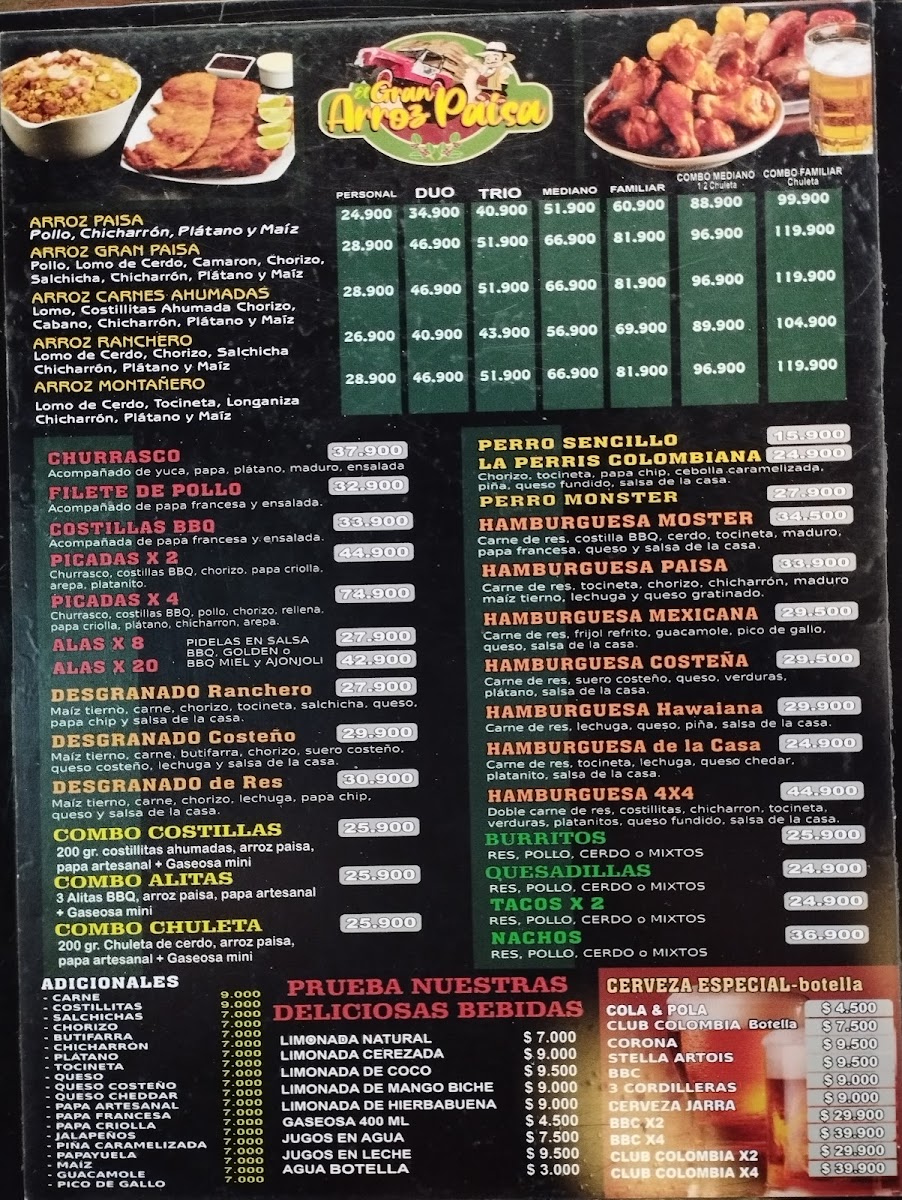 Entre los favoritos se encuentran las preparaciones clásicas como la salchipapa paisa, reconocida no solo por su sabor, sino también por el uso cuidadoso de ingredientes variados, que elevan un platillo tradicional. Aunque algunos clientes mencionan un ligero retraso en el servicio, la calidad y el sabor de los alimentos justifican esperar. En conjunto, El Gran Arroz Paisa se posiciona como una parada obligatoria para quienes buscan autenticidad y abundancia, en un ambiente agradable y acogedor.